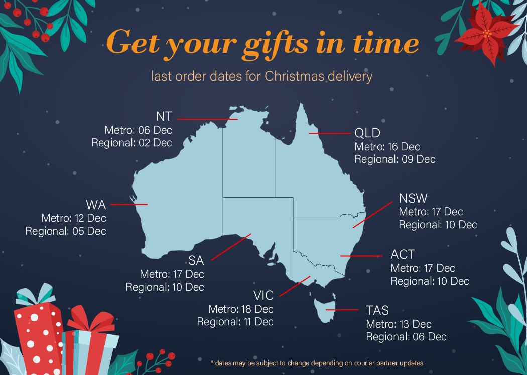 - All items are dispatched from our warehouse in Melbourne, Australia.